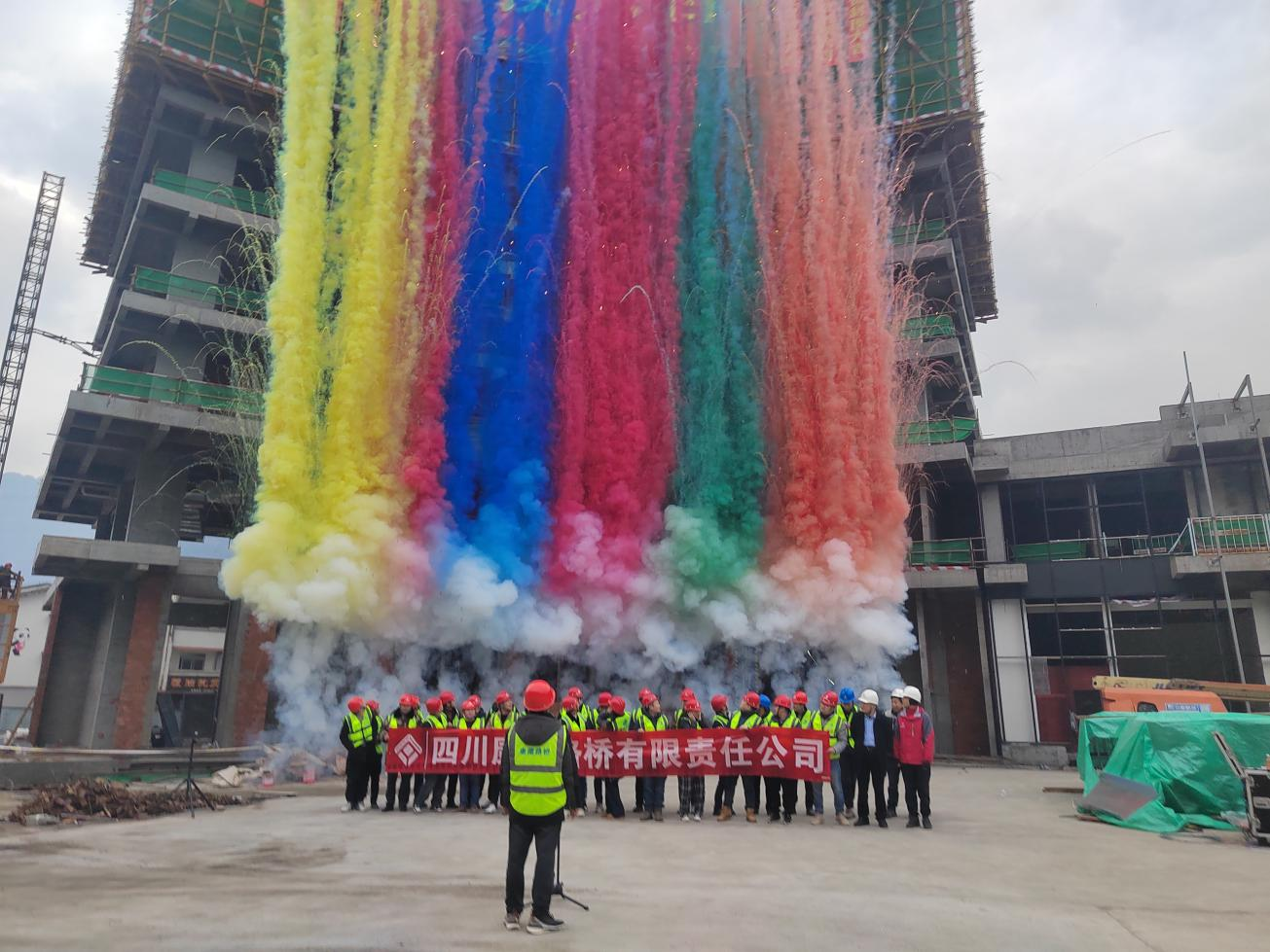 寶興縣靈關(guān)客運中心暨綜合停車場建設(shè)項目建筑面積約為1萬平方米,配套用房建筑高度約50米,地下1層,地上11層。自2024年3月開工以來,路橋公司始終堅持“施工方案先行,安全質(zhì)量齊舉,精心精細施工”的管理原則,踐行“無揚塵、無污染、無擾民、低噪音、無環(huán)保投訴”的綠色安全施工理念,調(diào)集優(yōu)質(zhì)資源,搶抓施工進度。最終,在項目全員的共同努力奮斗下,順利完成了寶興縣靈關(guān)客運中心暨綜合停車場建設(shè)項目主體結(jié)構(gòu)施工節(jié)點,喜封金頂。