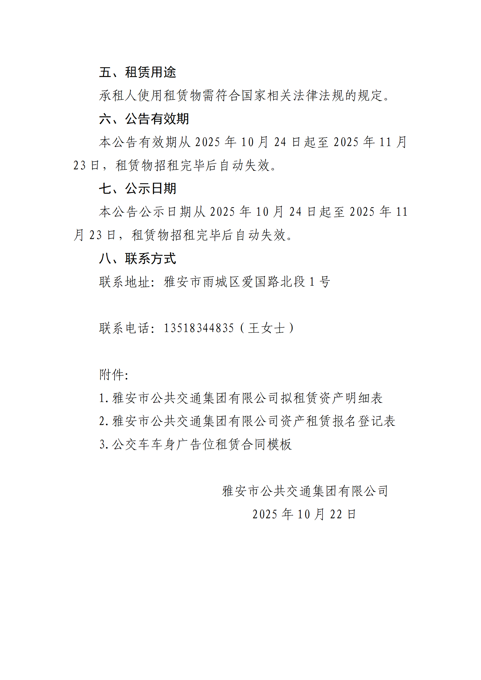 雅安市公共交通集團(tuán)有限公司 關(guān)于150輛公交車車身廣告位整體掛網(wǎng)招租的公告